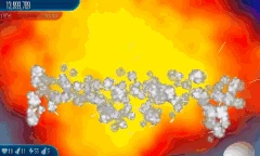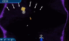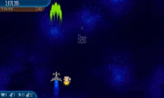 Black Hole Skipping Repeat of Wave 8 with more enemies. Four Black Holes appear onscreen. A line of 10 Chicks will fly through them. Once the line of Chicks is cleared, a line interlaced with 5 Chickens and 5 Chicks does the same thing. Once that line is cleared too, another line with 10 Chickens will fly through the Black Holes too. After they die, a line of 10 UFO Chickens will appear. Once the enemies are cleared, the Black Holes will disappear. A 150% zoom out is applied. |