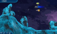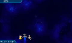 A Shot in the Dark is the first chapter in the game. It marks the debut of Chickens, Chicks, Alien Containers, Barriers, Black Holes, and the Henterprise. Four weapons are available to drop: Ion Blaster, Neutron Gun, Laser Cannon, and Hypergun, your starting weapon.