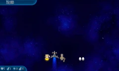 Black Hole Skipping Three Black Holes appear onscreen. A line of 10 Chicks will fly through them. Once the line of Chicks is cleared, a line interlaced with 5 Chickens and 5 Chicks does the same thing. Once that line is cleared too, another line with 10 Chickens will fly through the Black Holes too. Once the enemies are cleared, the Black Holes will disappear. |