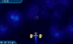 Satellite Fly-by Four columns of three LV2 Double Barriers, which have three groups of nine Pilot Chickens inbetween, appear onscreen while an Alien Container flies by. |