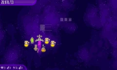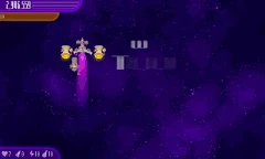 Chicks 'n' Chickens Three UFO Chicks fly around, which are surrounded by 10 Chickens. A group of 32 Chicks flies around them. The UFO Chicks, Chickens, and Chicks in a group will be replaced two times after they die. |