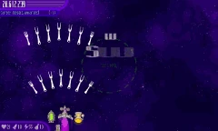 Alien Container "Target practice!" - Hero, after destroying the container An Alien Container appears from one of the sides of the screen. Once it's destroyed and the satellite (which will be Microgun unless you have Satellites Rush) from it disappears, eight Chickens will arrive for you to test your satellite, in style reminiscent of the Initial Approach waves from The Next Wave. |