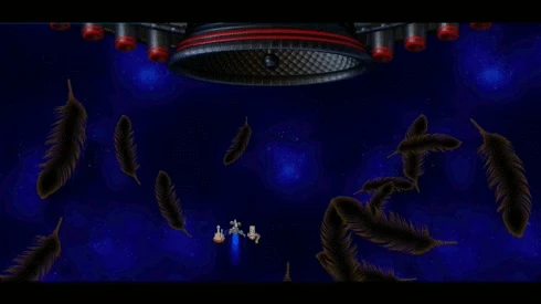 Once 20% of its health is depleted, it goes into Phase 2. It retreats, arrives from the left side of the screen, and uses Red Beam. After that, it'll start its pattern in this phase. It consists of Black Feathers, then either Sun Fireballs or Blue Ions, and then Chicken Wobble.